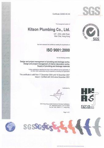 The reputation of Kitson Plumbing Group is built on the valuable experience of over 40 years. We care our clients and know that you concern the progress and quality of work. Therefore, we have adopted a quality assurance policy which fulfills the international standard and statutory requirements. In the beginning of 21st century, we had been awarded the ISO9001-2000 Certificate.
